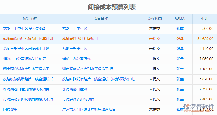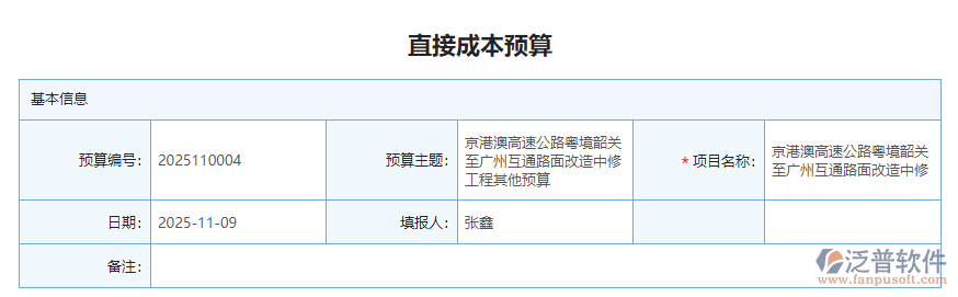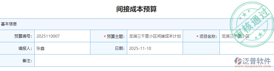 4、 泛普軟件安防工程管理系統(tǒng)中的預算管理是將直接成本預算和間接成本預算分開在管理,方便后期財務(wù)人員做成本統(tǒng)計。