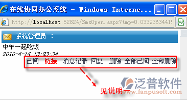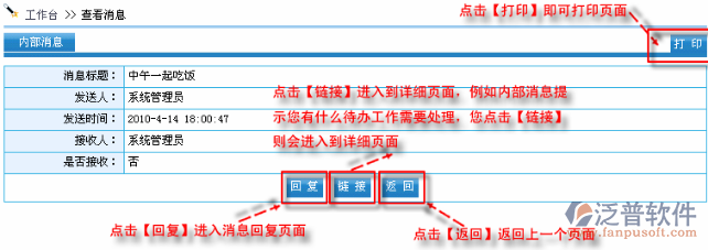 【鏈接】: 點(diǎn)擊【鏈接】進(jìn)入到詳細(xì)頁面,例如內(nèi)部消息提示您有什么待辦工作需要處理,您點(diǎn)擊【鏈接】則會(huì)進(jìn)入到詳細(xì)頁面。