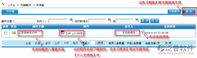 首先進(jìn)入到【互動(dòng)交流】—【內(nèi)部郵件】—【收件箱】進(jìn)入管理郵件,如圖: