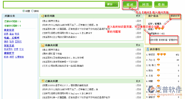 首先進(jìn)入到【互動(dòng)交流】—【知識(shí)堂】—【知識(shí)堂】—【管理資料】,如圖: