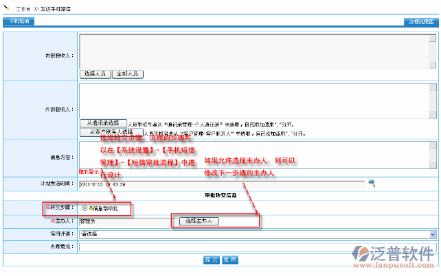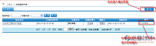 首先進(jìn)入到【互動(dòng)交流】—【手機(jī)短信】—【發(fā)送短信審批】,如圖: