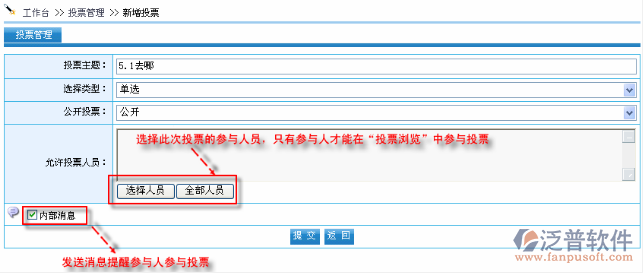 企業(yè)中經(jīng)常需要進(jìn)行各種問題的投票調(diào)查,通過調(diào)查結(jié)果數(shù)據(jù)幫助企業(yè)領(lǐng)導(dǎo)了解企業(yè)內(nèi)部信息。OA/E即提供了這種方式滿足了企業(yè)的需要,支持單選和多選的投票方式,并可進(jìn)行匿名投票,使網(wǎng)絡(luò)投票變得簡單可行。并可以通過調(diào)查問卷的結(jié)果自動(dòng)統(tǒng)計(jì)并以圖表直觀地顯示統(tǒng)計(jì)結(jié)果,為企業(yè)領(lǐng)導(dǎo)分析數(shù)據(jù)提供幫助。還可以在投票發(fā)起時(shí)指定參與人員,并可以通過內(nèi)部消息提醒參與投票。