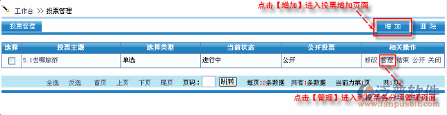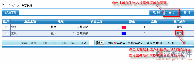 點(diǎn)擊每行投票的【管理】進(jìn)入投票分項(xiàng)管理頁面,如圖: