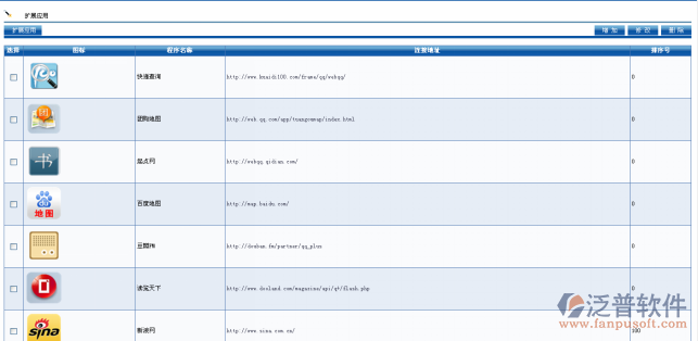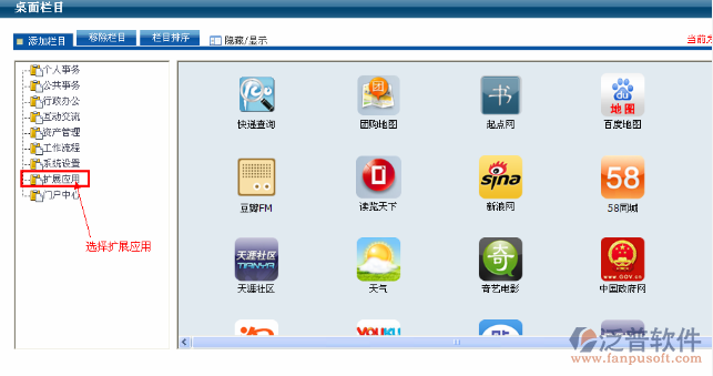擴展應用主要主要是集成其他外部的網站或者其他的WEB應用系統(tǒng),并可以按部門或者人員進行權限的設置。