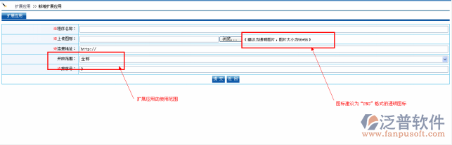 點擊【增加】進入擴展應用增加頁面,如圖: