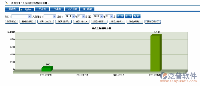 (3)可以按照日報表,月報表,季報表,年報表,部門,人員等圖形,表格報表進行分析