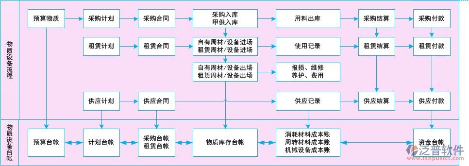 《泛普軟件泛普OA系統(tǒng)工程物質(zhì)管理軟件》業(yè)務(wù)管理模型如下圖: