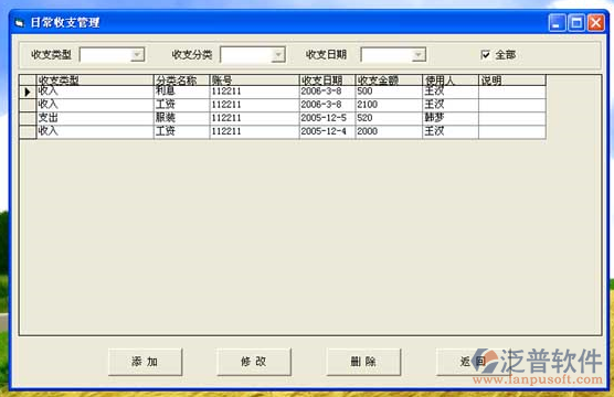 泛普軟件家庭財務管理系統(tǒng)各模塊具體的需求描述如下:
