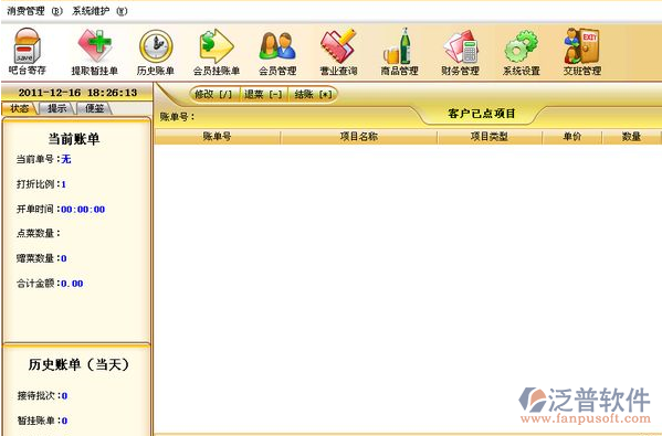 泛普軟件酒吧管理系統(tǒng)是一款專業(yè)的酒吧管理系統(tǒng),泛普軟件酒吧軟件吸收了國內(nèi)眾多酒吧企業(yè)管理經(jīng)驗(yàn),融合了最新的酒吧經(jīng)營管理思想,專為酒吧行業(yè)而特別定制,解決了酒吧行業(yè)收銀管理中的難題。軟件界面簡潔優(yōu)美,操作直觀簡單,無需專門培訓(xùn)即可使用。擁有收款機(jī)不能企及的如后廚打印,吧臺(tái)寄存管理,掛單管理,物料管理等強(qiáng)大功能,泛普軟件酒吧管理系統(tǒng)的實(shí)施應(yīng)用可大大提升酒吧的服務(wù)質(zhì)量和管理檔次,并為酒吧日常經(jīng)營管理實(shí)現(xiàn)信息化起到全面的推動(dòng)作用