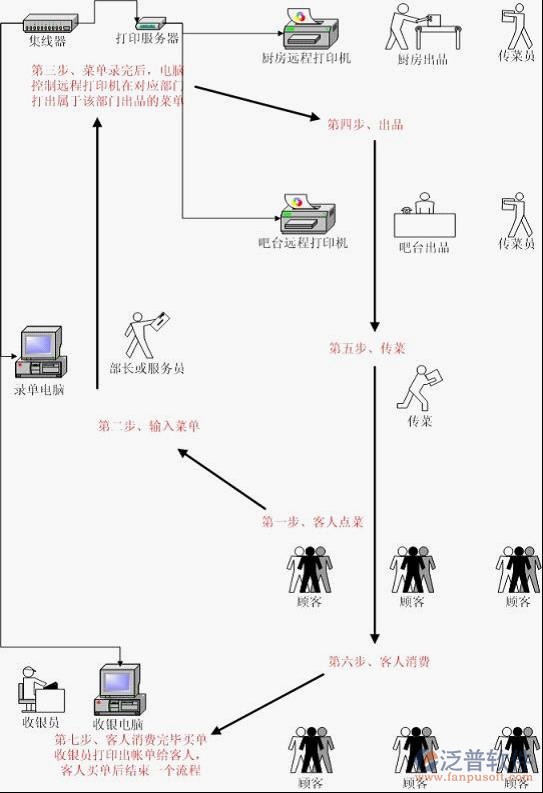 通過前臺點(diǎn)菜落單,然后通過網(wǎng)絡(luò)傳輸,由廚房打印機(jī)直接把單打印到廚房,省去了服務(wù)員送單的麻煩;而且打印的出品單清晰明了,使廚房、傳菜更容易使用;