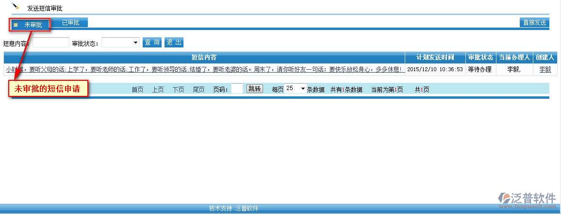 點(diǎn)擊【短信內(nèi)容】進(jìn)入手機(jī)短信審批頁面