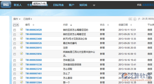 二是整個微信CRM生態(tài)系統(tǒng)尚不完善。現(xiàn)有的主流CRM系統(tǒng)產品商對微信的反應過慢,規(guī)?;?、產品化的對接平臺還沒推出。如何提高傳統(tǒng)CRM的互動性,讓整個生態(tài)系統(tǒng)的快速建立,這是當務之急。(泛普軟件最新資訊)