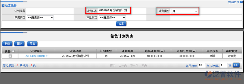 1、點擊【銷售計劃列表】進入列表主界面。如圖: