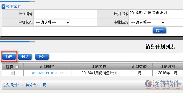 6、在銷售查詢同時可以點擊【新建】進入銷售計劃的新增頁面。如圖: