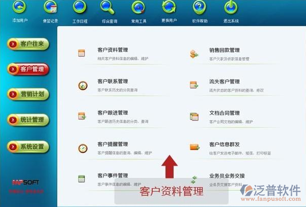 豐富的3D報(bào)表功能。 企業(yè)分支機(jī)構(gòu)與總部數(shù)據(jù)同步,職員出差在外,能上網(wǎng),就能使用泛普軟件泛普OA系統(tǒng)—CRM。 各時(shí)間段的經(jīng)營狀況綜合分析。 客戶詳盡檔案及快速查詢,避免客戶資料遺失??蛻舴植紶顩r,掌握客戶區(qū)域發(fā)展重點(diǎn)。 客戶銷售機(jī)會及跟進(jìn)記錄,下次跟進(jìn)自動提醒,機(jī)不可失。 客戶合同集中管理,合同到期提前提醒;客戶費(fèi)用支出情況及各項(xiàng)支出比例。 客戶服務(wù)及受理情況,提升企業(yè)服務(wù)質(zhì)量。 客戶提醒功能確??蛻羰聞?wù)管理不疏忽,避免管理死角。 客戶的訂單,出貨,退貨等單據(jù)詳細(xì)記錄,每筆業(yè)務(wù)均有賬可查。 對客戶采購進(jìn)行統(tǒng)計(jì)及趨勢分析,掌握客戶采購變化及各客戶采購量。 對客戶利潤貢獻(xiàn)率進(jìn)行分析,并進(jìn)行年度趨勢分析。 對客戶往來賬務(wù)細(xì)化分析,掌握每一客戶應(yīng)收/應(yīng)試付款狀況及實(shí)收/實(shí)付比例。 對應(yīng)收/應(yīng)付款單時(shí)行提前提醒或超期提醒,加速企業(yè)回?cái)n資金。避免壞帳出現(xiàn)。 職員客戶擁有量分析,掌握職員銷售能力或銷售潛能。職員銷售任務(wù)分配及考核。 每位職員詳細(xì)工作記錄,評價(jià)職員表現(xiàn),有章可循。 對每位職員進(jìn)行利潤貢獻(xiàn)率分析。 對職員分工進(jìn)行明確權(quán)限設(shè)置。 詳細(xì)的商品銷售記錄 對商品銷售進(jìn)行分析,掌握各個(gè)時(shí)期旺銷/滯銷商品。 對各商品進(jìn)行利潤貢獻(xiàn)率分析。 對商品存量進(jìn)行分倉分析及存量上下限提醒功能,避免積壓或脫銷。 資金出入賬明細(xì)分析。