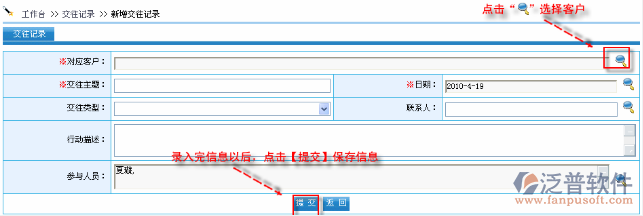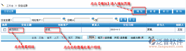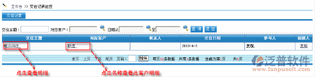 首先進(jìn)入到【銷售系統(tǒng)】—【客戶跟蹤】—【交往記錄】,如圖: