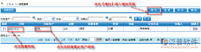 首先進(jìn)入到【銷售系統(tǒng)】—【客戶跟蹤】—【銷售費(fèi)用審批】,如圖: