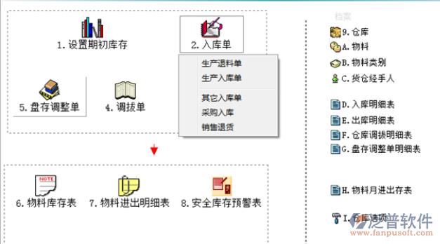 2.1采購入庫 采購入庫主要是對原材料的進倉管理,泛普軟件倉庫erp系統(tǒng)采購入庫分主料入庫和輔料入庫,主料入庫一般還要跟蹤布的批次,因為每一批回來的布料有色差,入庫后倉庫對應的庫存增加,同時增加這個供應商的應付賬款。