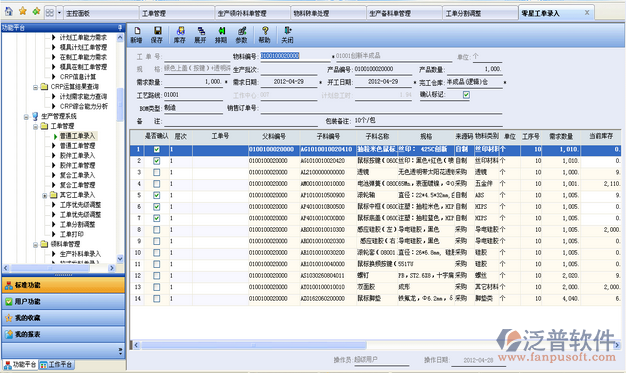 泛普軟件erp系統(tǒng)企業(yè)管理軟件平臺(tái)—生產(chǎn)管理系統(tǒng)以工單作為引線,全面跟蹤從生成工單到最終完成的全部過程。工單可以通過生產(chǎn)運(yùn)作計(jì)劃得到或手工錄入。生成工單時(shí)將使用標(biāo)準(zhǔn)的物料清單,并同時(shí)記錄了工藝路線信息。其中由生產(chǎn)運(yùn)作計(jì)劃得到的工單,綜合考慮到生產(chǎn)能力、批量、提前期、現(xiàn)有資源等各方面的影響,是合并的需求信息;而手工工單,則允許記錄工單之間的層次關(guān)系。