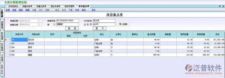 軟件從庫(kù)存物品的出入庫(kù)操作、庫(kù)存調(diào)整調(diào)撥業(yè)務(wù)、盤(pán)點(diǎn)業(yè)務(wù)及盈虧差異處理等過(guò)程進(jìn)行管理,天思erp系統(tǒng)支持多倉(cāng)庫(kù)、貨位、批次、包裝單位等管理方式,支持固定、變動(dòng)成本核算方式和多種計(jì)算方法。