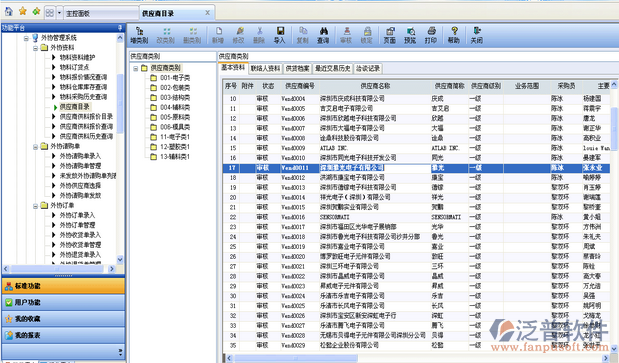 泛普軟件erp系統(tǒng)企業(yè)管理軟件平臺(tái)-外貿(mào)管理系統(tǒng)是根據(jù)企業(yè)對(duì)外貿(mào)物料的需求(包括外貿(mào)資料來(lái)源于物料需求計(jì)劃(MRP)、物料定貨點(diǎn)請(qǐng)購(gòu)計(jì)劃(ROP)、零星的外貿(mào)申請(qǐng)三個(gè)方面), 確立何時(shí)外貿(mào)、向誰(shuí)外貿(mào)、以什么價(jià)格外貿(mào)以及何時(shí)收貨等外貿(mào)事務(wù)。