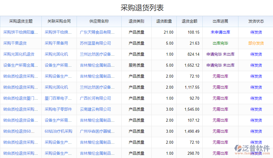 采購(gòu)?fù)素浭侵甘肇涍^(guò)程中或收貨后,因各種原因需要將料品退回給供應(yīng)商的一種業(yè)務(wù)行為。