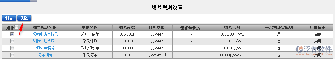 3.選擇需要刪除的“編號規(guī)則”點擊【刪除】即可