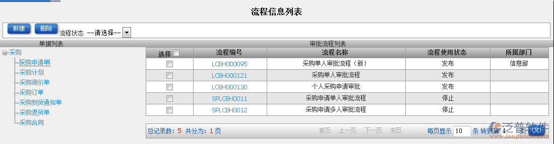 1.點(diǎn)擊辦公模式→采購(gòu)管理→基本設(shè)置→審批流程設(shè)置,進(jìn)入“審批流程設(shè)置”窗口: