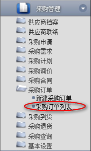 1.點擊辦公模式→采購管理→采購訂單→采購訂單列表,進入“采購訂單列表”窗口: