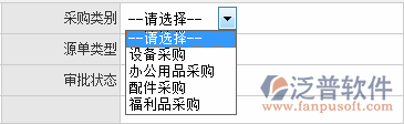 (2)下拉選擇采購類別、源單類型、審批狀態(tài)、單據(jù)狀態(tài)