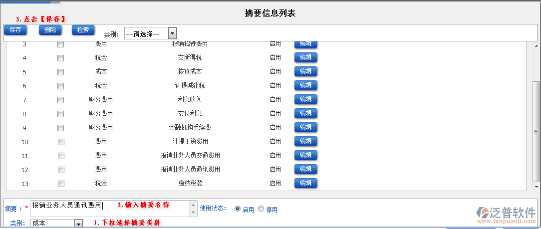 那么如何在泛普軟件ERP系統(tǒng)財務(wù)管理中新建摘要信息?