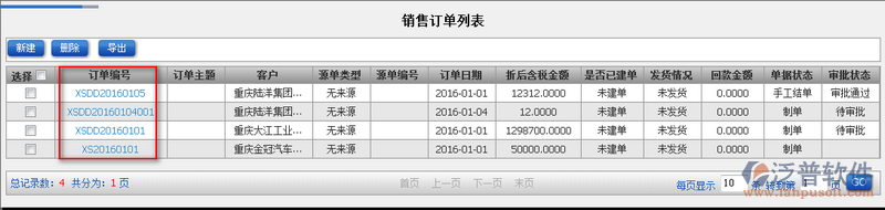 3、查詢到的銷售訂單可以詳細(xì)看到發(fā)貨情況、回款金額等相關(guān)信息。同時(shí)點(diǎn)擊【訂單編號(hào)】便可查看銷售訂單的詳細(xì)信息。如圖: