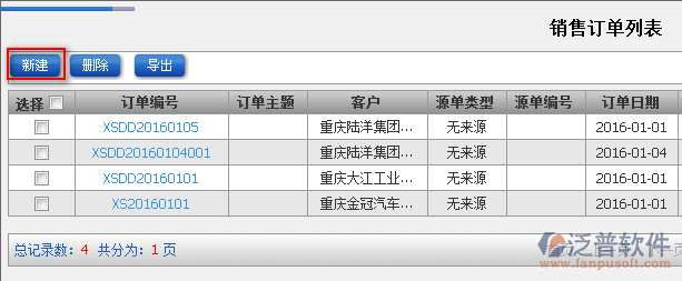 5、在查詢過程中同時(shí)可以實(shí)現(xiàn)新建銷售訂單功能。點(diǎn)擊【新建】便可實(shí)現(xiàn)新增。如圖: