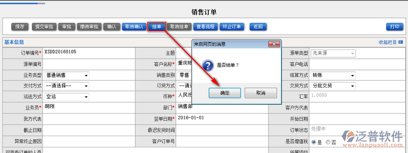 4、審批通過的銷售訂單,用戶可對其確認(rèn),點(diǎn)擊【確認(rèn)】即可對銷售訂單進(jìn)行查看。如圖: