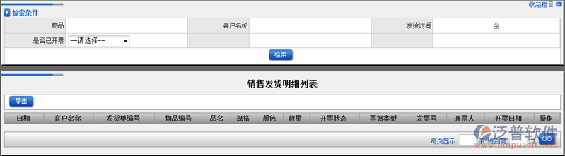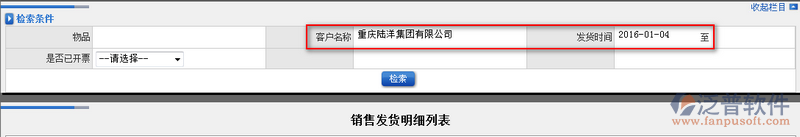 2、通過ERP系統(tǒng)提供的檢索條件,用戶可以根據(jù)自己的需求快速查詢到自己想要的發(fā)貨明細。如圖: