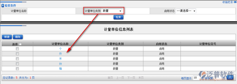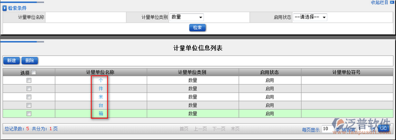 5、創(chuàng)建好的計量單位信息會以列表的模式顯示在主頁面中。如圖:
