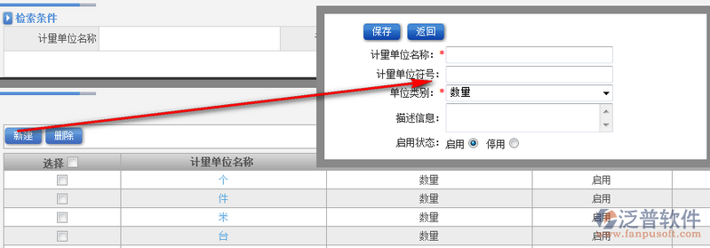 3、點擊【新建】即可進入計量單位新增頁面。如圖: