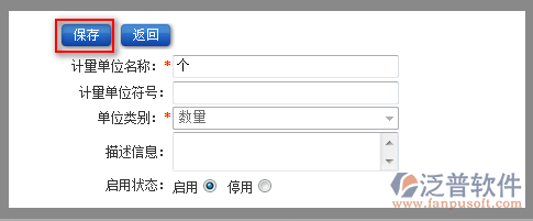 4、填寫完計量單位的相關信息,點擊【保存】即可完成新增操作。如圖: