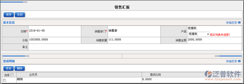 ERP系統(tǒng)的【銷售匯報】功能主要對我們銷售部進行管理,在此功能中可以統(tǒng)計出每位業(yè)務員的工作情況以及提成比例。銷售匯報功能可以體現(xiàn)出我們業(yè)務員的工作情況,其中銷售匯報主要涉及的屬性有:銷售部門、產(chǎn)品、提成明細、提成比例等相關(guān)信息填寫
