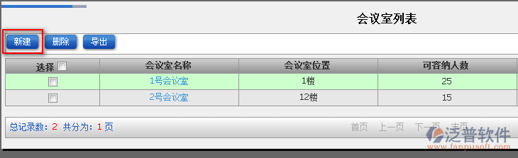 3、選中需要導(dǎo)出的會(huì)議信息,點(diǎn)擊【導(dǎo)出】即可實(shí)現(xiàn)相關(guān)會(huì)議室的導(dǎo)出功能。如圖: