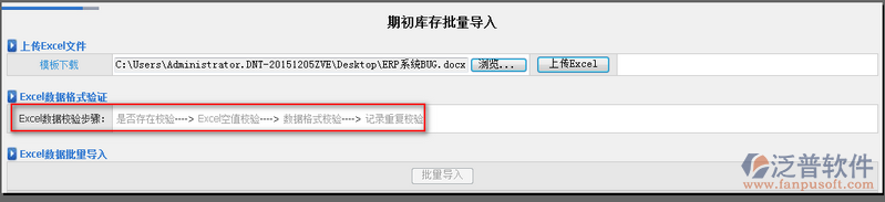 5、上傳的Excel表格需要按照系統(tǒng)提供的驗證方式,對其驗證成功之后,才能進行導入。如圖: