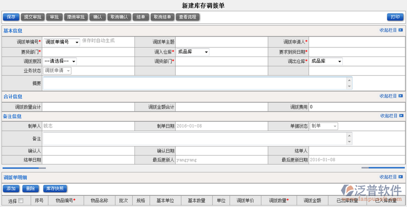 當(dāng)前位置:工程項(xiàng)目OA系統(tǒng) > ERP系統(tǒng) > 功能介紹 > 庫(kù)存管理 > 庫(kù)存調(diào)撥
