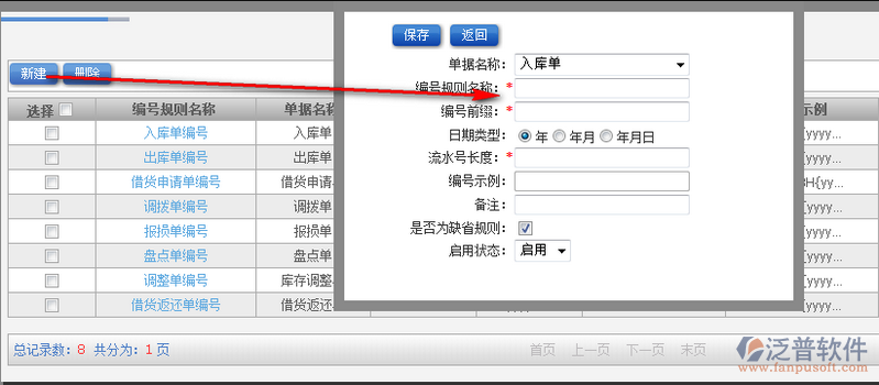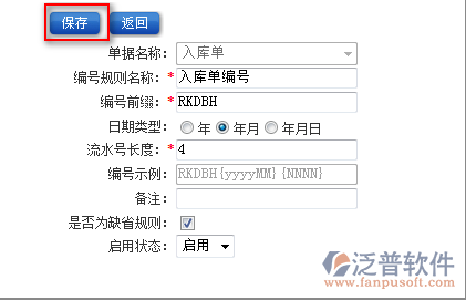 3、填寫完編號規(guī)則新增中的相關(guān)信息,點(diǎn)擊【保存】即可完成新的編號規(guī)則創(chuàng)建。如圖: