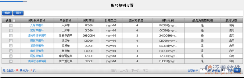 4、創(chuàng)建好的編號規(guī)則信息,都會以列表的形式顯示在主頁面中。如圖: