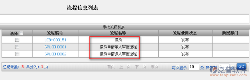 5、發(fā)布成功的審批流程,都會(huì)以列表的形式顯示在審批流程列表中。如圖: