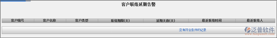 1.點擊辦公模式→客戶管理→客戶聯(lián)絡→客戶聯(lián)絡延期預警,進入“客戶聯(lián)絡延期預警”窗口: