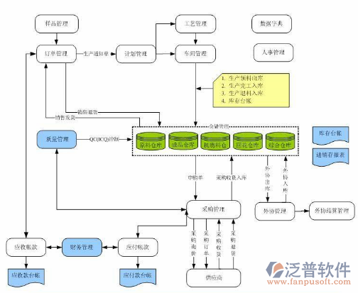 泛普軟件的ERP管理系統(tǒng)主要是以生產(chǎn)管理為核心,集采購、銷售、存貨、生產(chǎn)、工資、固定資產(chǎn)、賬務(wù)管理等模塊于一體,通過對企業(yè)采購、銷售、存貨和生產(chǎn)等經(jīng)營環(huán)節(jié)信息的全程記錄、傳遞、跟蹤和分析,實(shí)現(xiàn)對企業(yè)物流、資金流、信息流和生產(chǎn)成本控制等在線動態(tài)監(jiān)控和全方位管理,從而整合和優(yōu)化企業(yè)內(nèi)部資源。通過MRP生產(chǎn)計(jì)劃為中心點(diǎn),合理分配生產(chǎn)資源,科學(xué)安排采購、生產(chǎn)開工時間,使產(chǎn)、供、銷三大業(yè)務(wù)環(huán)節(jié)互相驅(qū)動,維持動態(tài)平衡,使企業(yè)的業(yè)務(wù)流程更優(yōu)化,管理更有效率,以此提高企業(yè)在市場中的競爭力。
