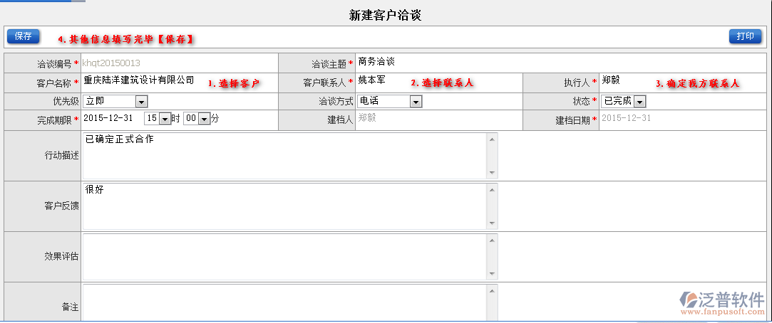 2.客戶洽談信息填寫