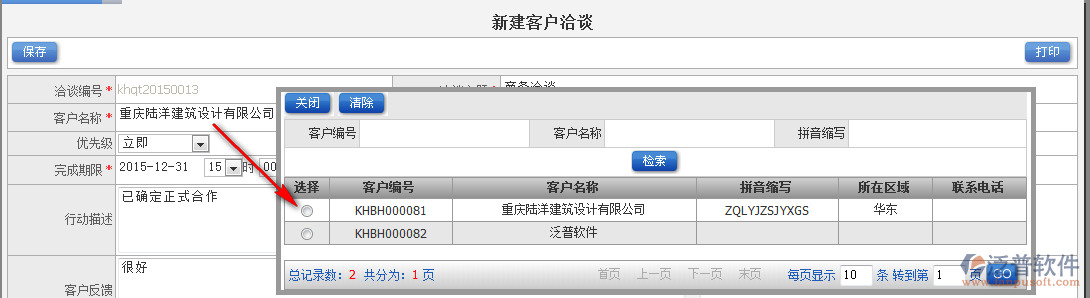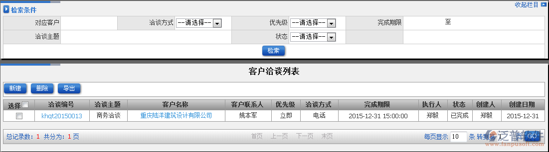 如何在泛普軟件ERP系統(tǒng)CRM模塊中新增洽談記錄?