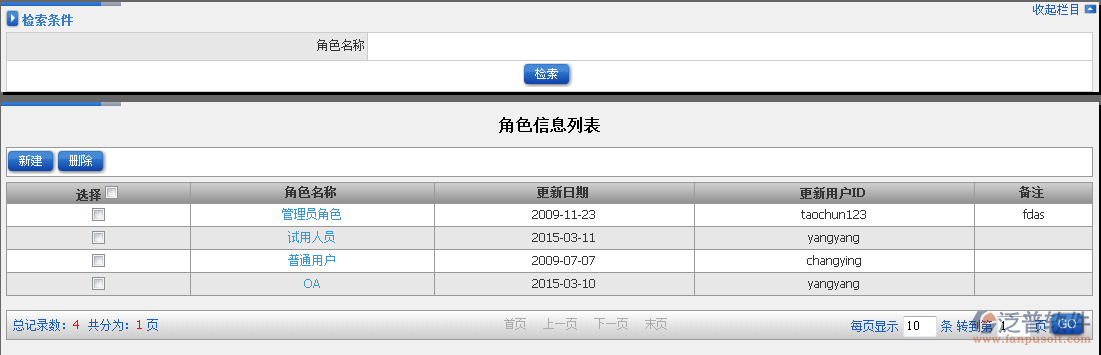 如何在泛普軟件ERP系統(tǒng)系統(tǒng)管理模塊查詢系統(tǒng)新建了那些角色?